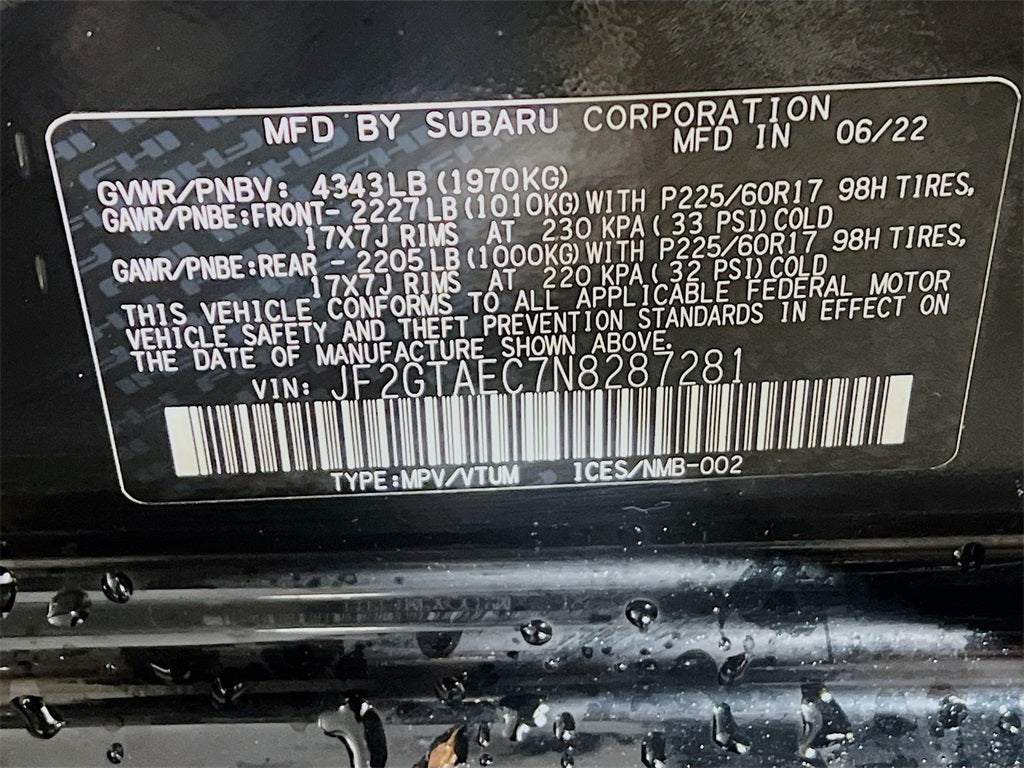 - Vehicle Name: Subaru Crosstrek