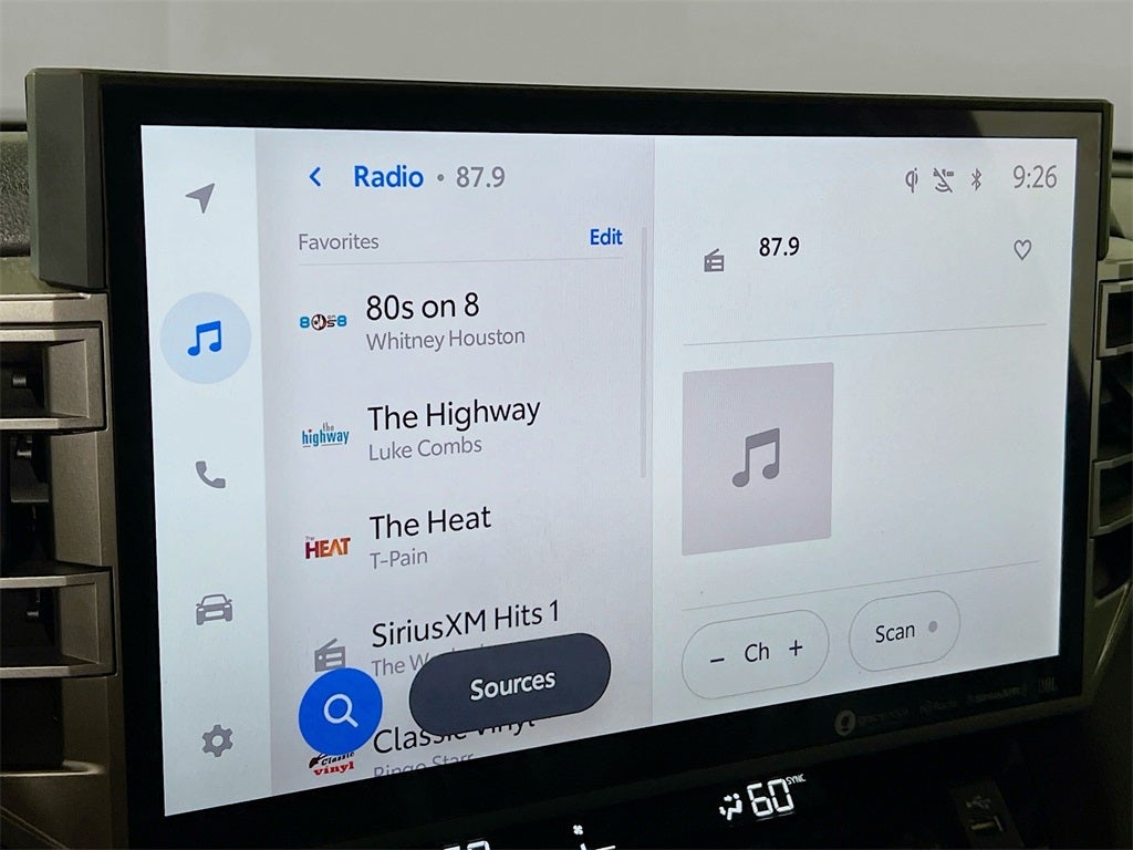 - Radio: Audio Plus -inc: 14-inch touchscreen, 9 speakers, Android Auto and Apple CarPlay compatible and SiriusXM w/3-month platinum plan trial subscription, See toyota.com/audio-multimedia for details, Connected services - Safety Connect w/up to 10-year trial, Remote Connect w/1-year trial, Drive Connect w/1-year trial, Service Connect w/up to 10-year trial, Wi-Fi Connect w/up to 3 GB within 1-month trial, See toyota.com/connected-services for details