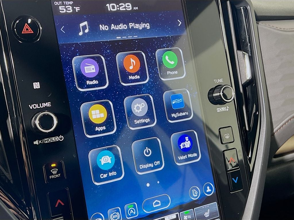 - Radio: Subaru 11.6" Multimedia Plus System -inc: valet mode, integrated center information display, AM/FM stereo HD Radio, multi-touch gesture high resolution display screen, voice activated controls, Bluetooth® audio streaming and hands-free phone connectivity w/SMS text messaging connectivity (refer to subaru.com for cell phone compatibility), iPod control capability, SiriusXM w/360L (4 months free trial/subscription required after), SiriusXM Travel Link (3 years free trial/subscription required after), smartphone integration for Android Auto and Apple CarPlay w/full screen view and wireless connection, USB and Over The Air (OTA) audio system update, steering wheel control switches for audio and Bluetooth®, 6 speakers, 3.5mm auxiliary input jack and roof mounted audio and satellite antenna